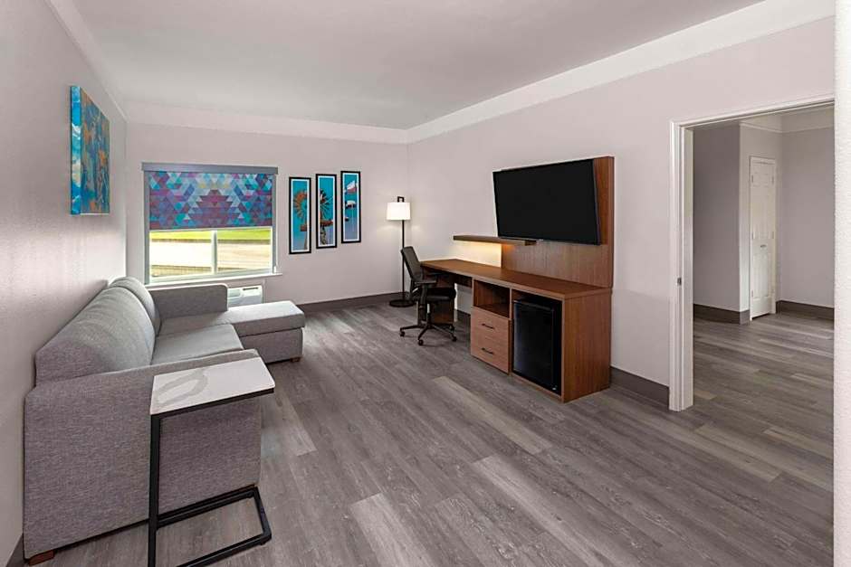 The spacious suite offers air conditioning, a tea and coffee maker, as well as a private bathroom boasting a bath and a shower. The suite has carpeted floors, a seating area with a flat-screen TV with cable channels, a wardrobe, a sofa, as well as heating.